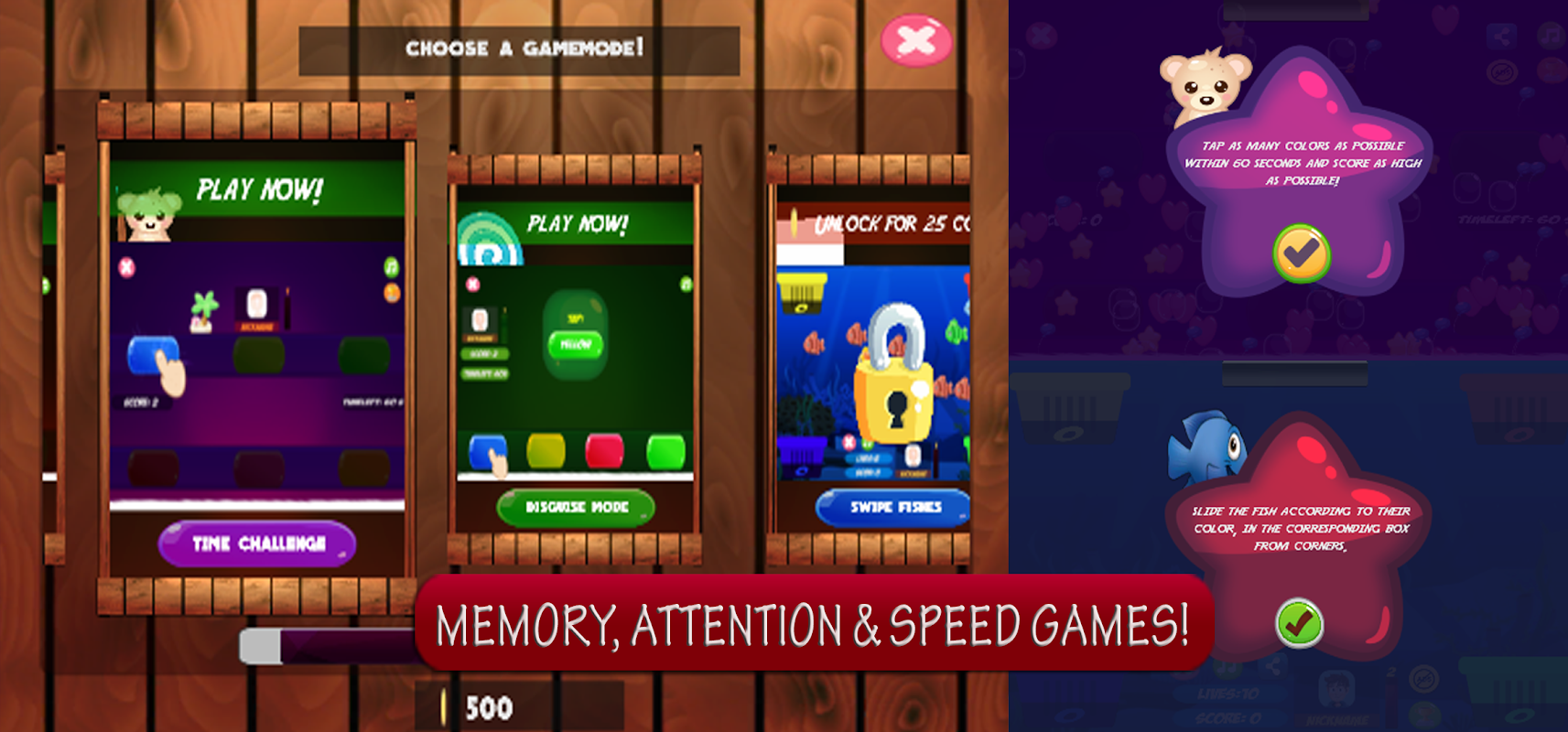 ColorJoy vous propose de nombreux jeux d'attention, de mémoire et de rapidité.