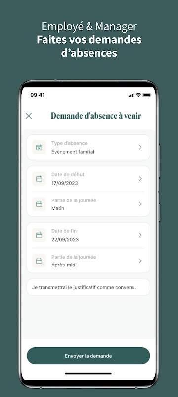Demandes d’absences et congés avec validation en un clic côté manager.