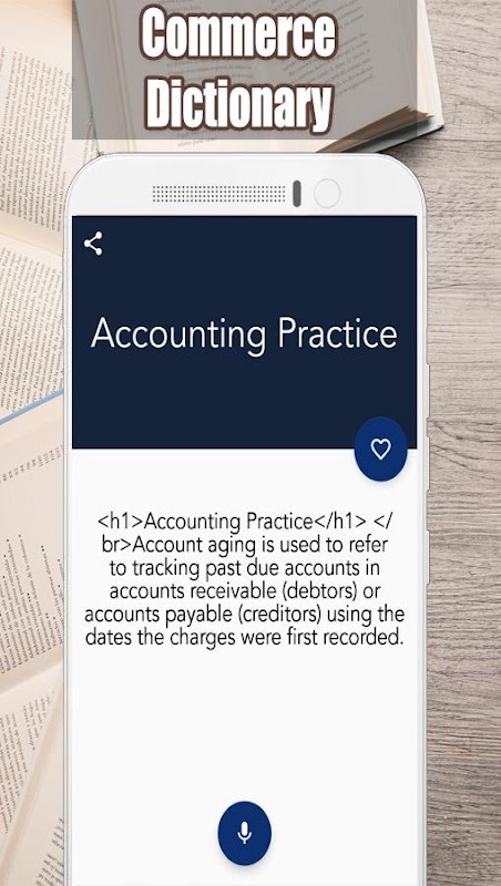 Le dictionnaire du commerce définit les termes du commerce d'une manière qui est facile à comprendre pour quiconque. Cette application de dictionnaire de commerce n'est pas un simple dictionnaire que vous trouverez dans les magasins de papeterie et dans vos manuels de commerce. Cette application de dictionnaire de commerce gratuit est écrite et expliquée de manière à ce que tout le monde puisse apprendre la langue du commerce dans un court laps de temps. Chaque terme Commerce et Business est donné avec la capacité vocale audio afin que vous puissiez reconnaître le mot de base derrière le jargon.