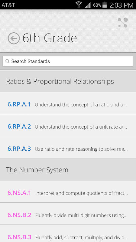 View the Common Core state standards in one convenient FREE app! This app includes a simple way to view each Common Core standard. A great reference for parents and teachers to easily read and understand the core standards. Quickly find standards by subject, grade, and subject category (domain/cluster). This app currently includes Math standards K-12 and Language Arts standards K-12.