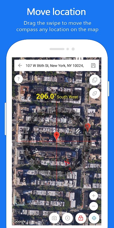 - Assist the compass view anywhere on the map you want.