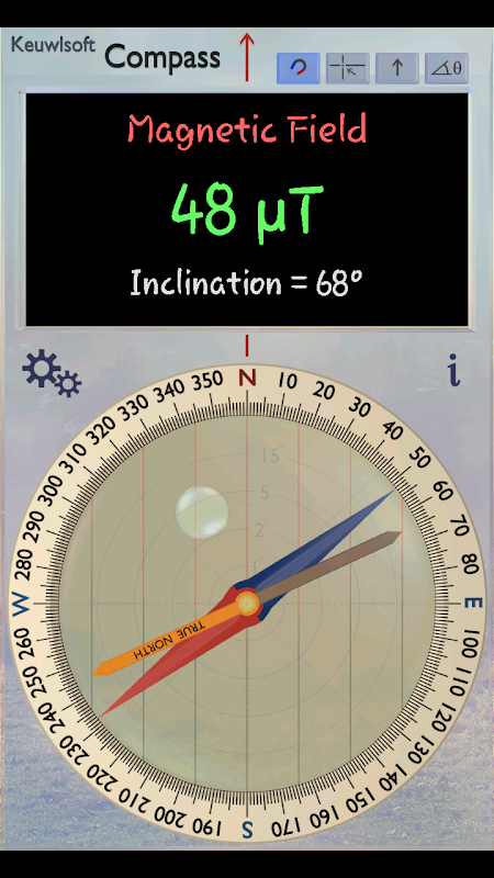 Utilise le capteur de champ magnétique pour convertir votre appareil en boussole. N'a pas besoin d'être de niveau. Aiguilles magnétique Nord et True North.