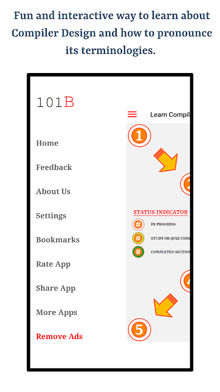 L'application vous aidera à apprendre la prononciation correcte des terminologies utilisées dans Compiler Design en utilisant la langue anglaise. Voici les principales caractéristiques de cette application
