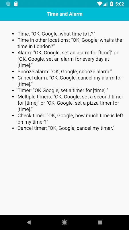 You can ask it many questions and tell it to do things. Just start with "Ok Google" or "Hey Google" to get answers from Google, manage your day, book your flight, set alarm, enjoy your entertainment, and control your smart home. When you ask for help, it can tell your voice from others for a more personalized experience. Google Home Mini works on its own or you can have a few around the house, giving you the power of Google anywhere. From this app, you will able to learn essential commands you can use with Home Mini. Enjoy!