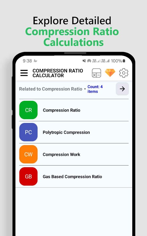 ✔ Calcul instantané du taux de compression : calculez rapidement les valeurs pour tout système.