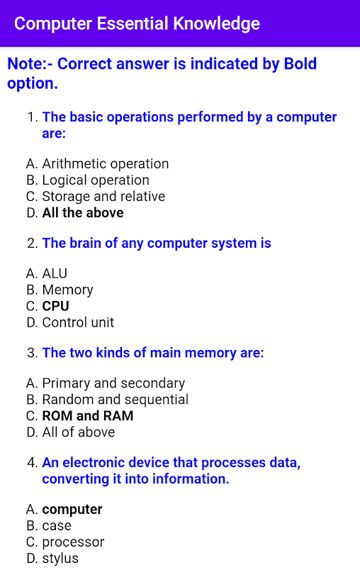 Computer essential knowledge App 2020 is very useful app for initial computer information.