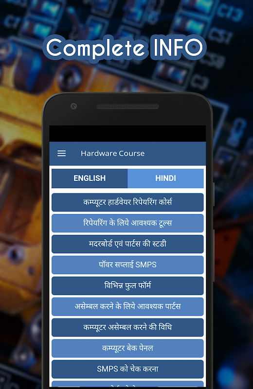 Computer Hardware Course in Hindi & English App covers computer repairing course.