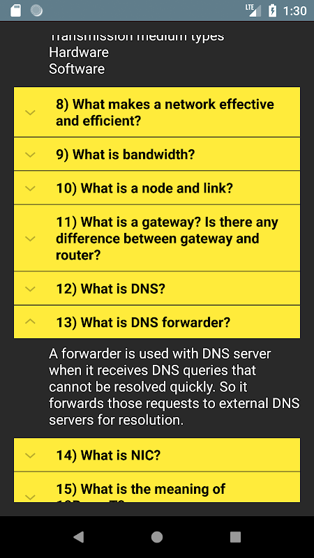 A list of top frequently asked networking interview questions and answers are given in the app.
