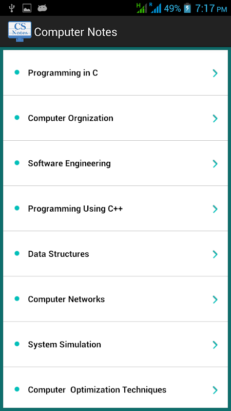 Explore all Computer Science subjects by the Computer Science Notes App. This App will provide you all computer related subject under one roof. All the important topics under every subject are described in simple and detailed manner using examples.