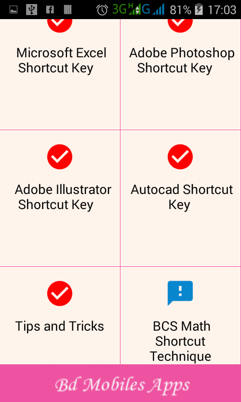 Our app consist lots of shortcut keys for ms excel and ms word , adobe photoshop shortcut keys , adobe illustrator shortcut keys , auto cad shortcut keys , and many more . Who can use keyboard shortcuts instead of mouse keyboard shortcuts will be make it easy your work and saving time .