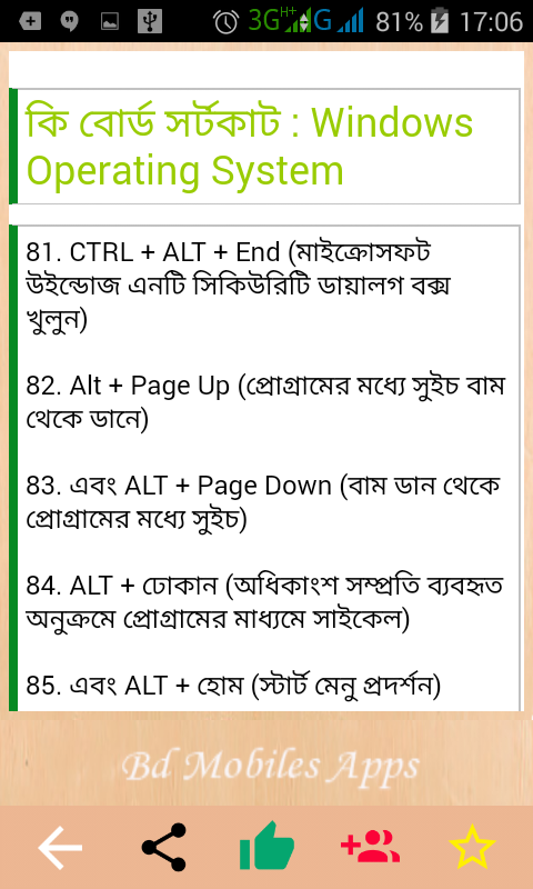 computer keyboard shortcuts keys App is a bangla apps . This App is bangla educational application and its provide many different shortcuts tips and tricks of Microsoft office , Microsoft excel , adobe photoshop , adobe illustrator , auto cad , and windows operating system.