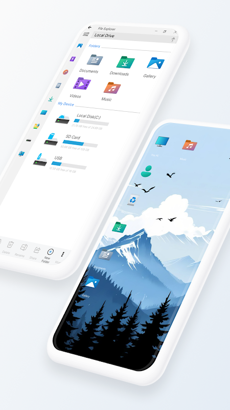 Gestionnaire de fichiers façon ordinateur offre à votre téléphone ou tablette l'apparence, l'ergonomie et les commandes d'un véritable explorateur de fichiers.