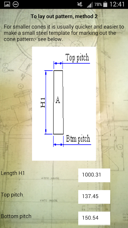 As a fabricator of 40+ years, the last 30 or so as the workshop manager, I have constantly used trigonometry etc. to calculate cones, segmental bends and much more. Nowadays I am constantly asked by the fabricators to calculate developed lengths etc. to save them the time and effort of laying it out. I have developed this app so that they can do it for themselves and therefore save “MY TIME”.