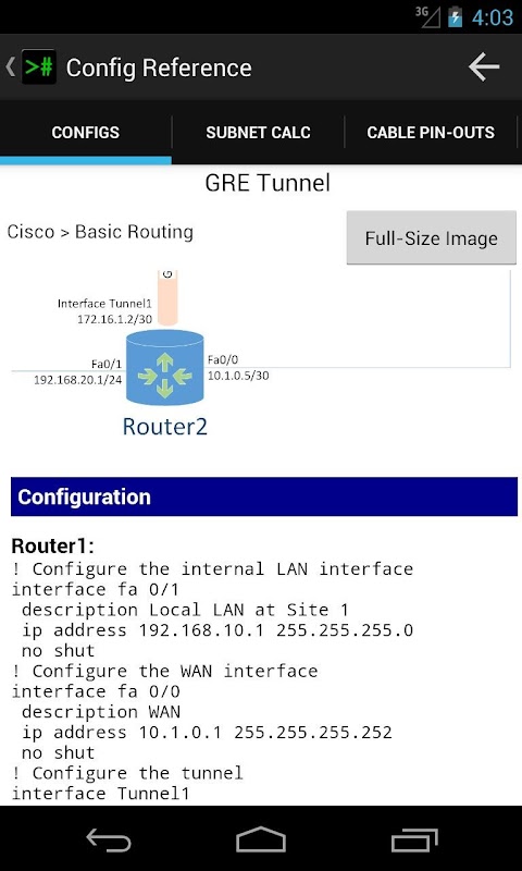 Config Reference is a network device configuration reference tool suitable for beginners and gurus alike. Included in the app are dozens of common implementation scenarios currently covering Cisco IOS routing and switching technologies. No longer do you need to rely on having an internet connection when stuck in the data centre - all content is available fully offline.