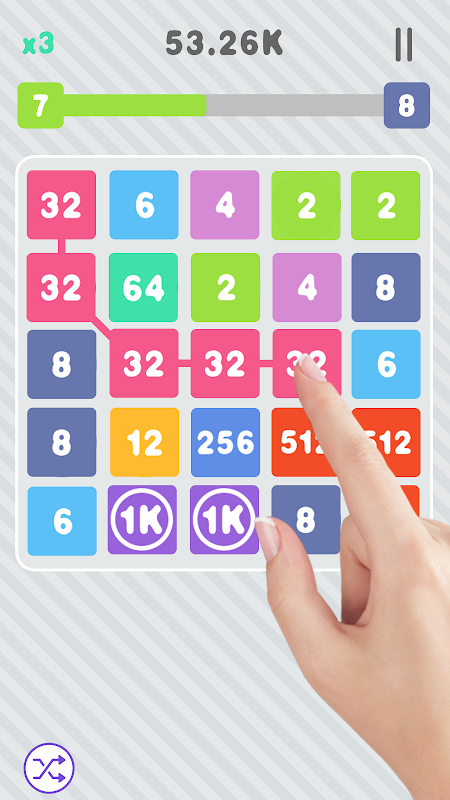 Connect values on the board to earn high scores! The longer your connection, the greater the score. You only have so many moves to make, so put some thought into each one as you go.