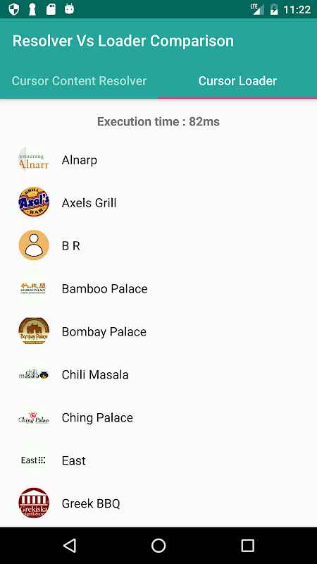 This demo app presents the "Resolver-Vs-Loader" library comparing the execution time of both the ContentResolver and the CursorLoader in fetching contacts.