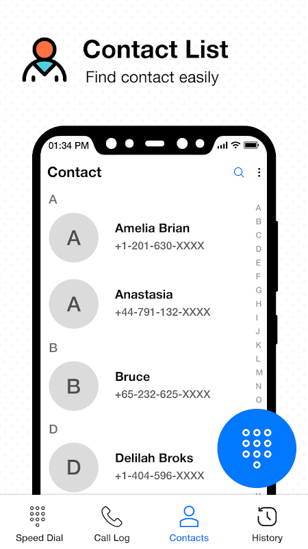 Contact is the best phone calling app. Phone helps you easily connect with family and friends, block spam callers.