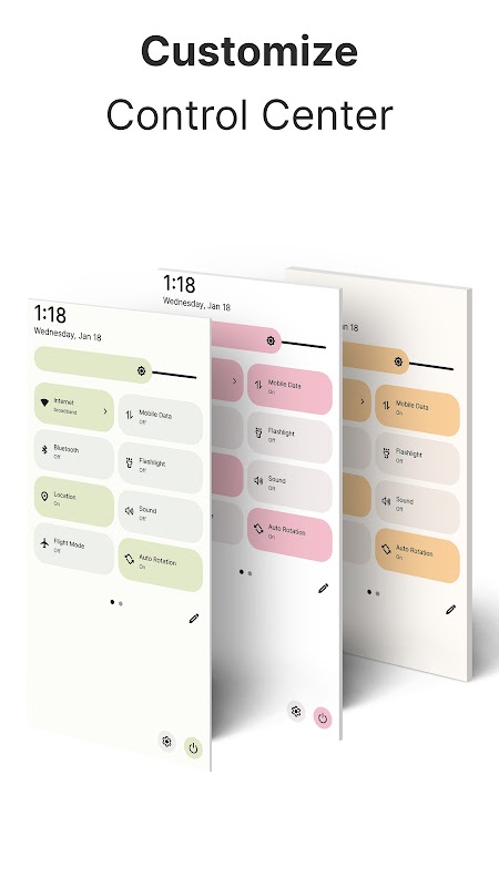 Control Center Android 14 Style est conçu pour changer votre panneau de commande coulissant supérieur pour donner un nouveau look.