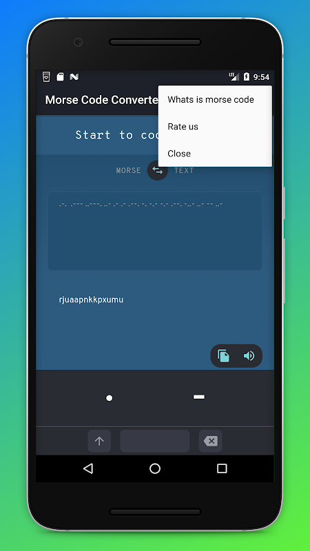 ☞ Installez cette application et commencez à coder du texte en Morse, à le décoder en texte et à utiliser l'alphabet Morse.