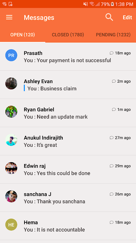 View and change status of conversations - open, pending, closed