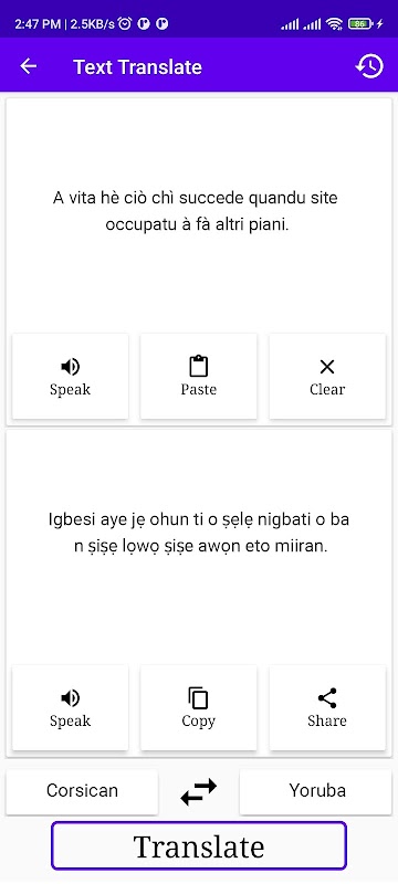 * Traduire le texte corse en yoruba et yoruba en traducteur corse.