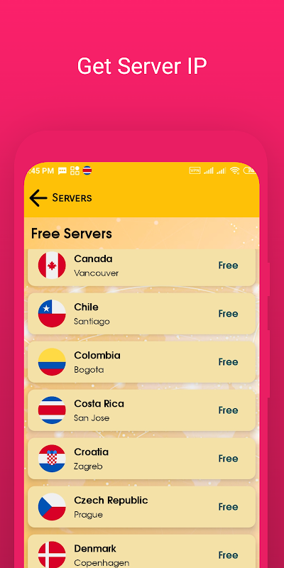 Obtenez l'application Costa Rica VPN, l'un des meilleurs VPN pour Android disponible pour vos téléphones et tablettes Android. Et ayez l'esprit tranquille en sachant que vous êtes complètement anonyme en ligne.