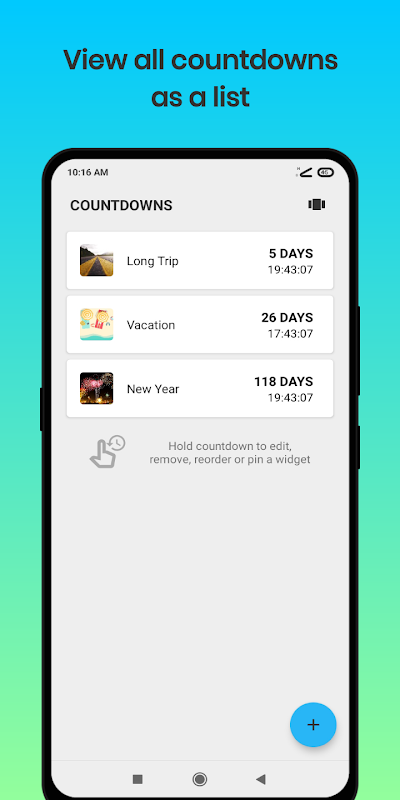 Si vous recherchez un compteur de jours, l'application Countdown offre de nombreuses fonctionnalités que vous aimerez. Téléchargez l'application et profitez du widget de compte à rebours élégant.