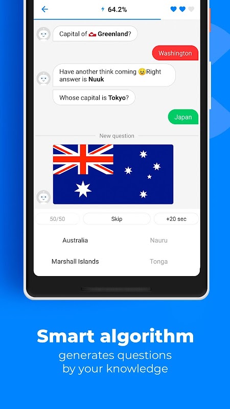 NEW LEARNING FORMAT: Chat with questions about capitals and flags is fast, customary and handy.