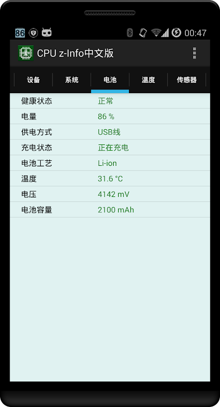 - 电池信息(电量, 类型, 状态, 电压, 温度, 等等 )