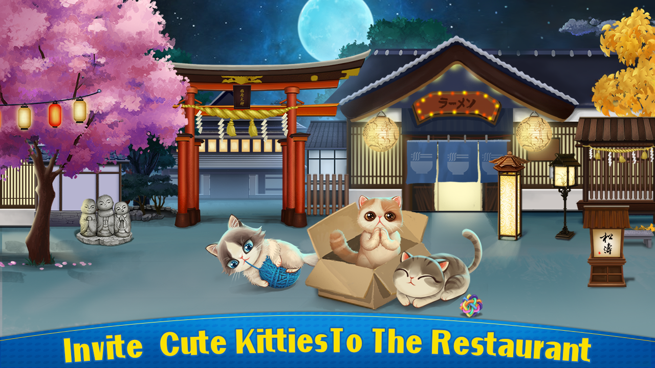 Notre nouvelle marque Kitty ramen bar est ouverte ! Aimeriez-vous avoir un bol ou des ramen avec du porc sauté, oeuf et bouillon ? Améliorez votre intérieur pour attirer des chats dans votre restaurant, les clients aiment ces chats asiatiques adorables !
