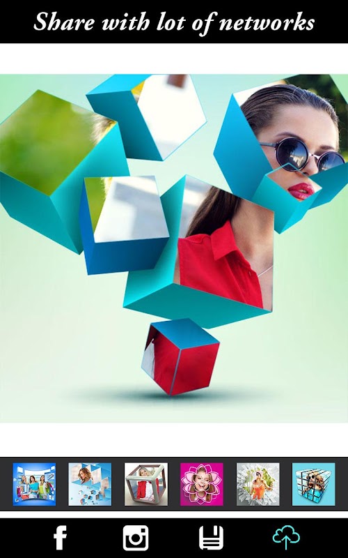 Creative 3D Photo Editor est une application Photo Frames qui vous donnera un look 3D à vos photos. Si vous voulez essayer des effets 3D comme la danse sur téléphone, les cubes tombants et les pétales de fleurs, essayez notre application 3D Photo Editor 3D pour ces effets 3D spéciaux pour vos photos pour Instagram!