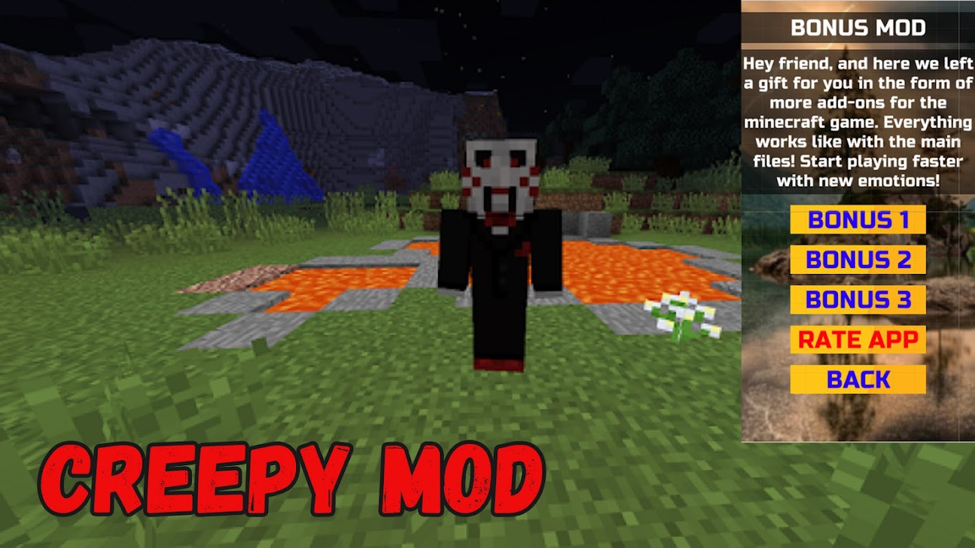 "This Creepy addon for MCPE app will quickly and easily help you install mods for Minecraft Poket Edition. It has a number of advantages: 💥
