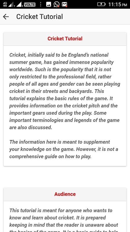 Cricket, initially said to be England’s national summer game, has gained immense popularity worldwide. Such is the popularity that it is not only restricted to the professional field, rather people of all ages and gender can be seen playing cricket in their streets and backyards. This tutorial explains the basic rules of the game. It provides information on the cricket pitch and the important gears used during the play. Some important terminologies and legends of the game are also discussed.