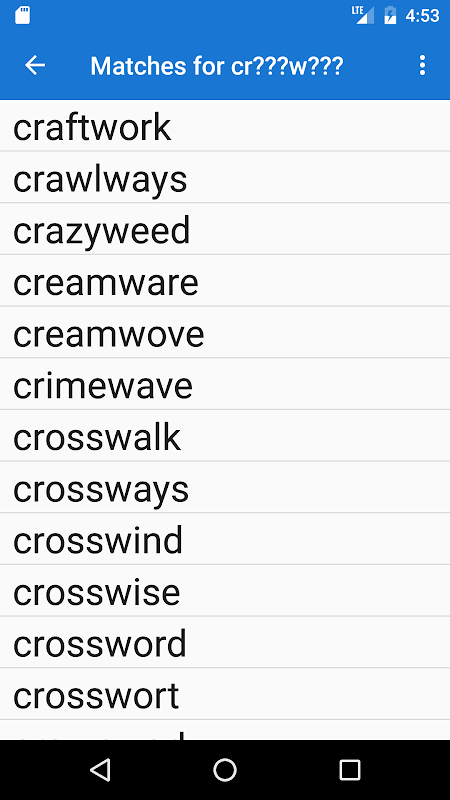 This Crossword Solver will search its built in dictionary of over 250,000 entries for words that match patterns with missing letters and for anagrams of given words and give instant results.