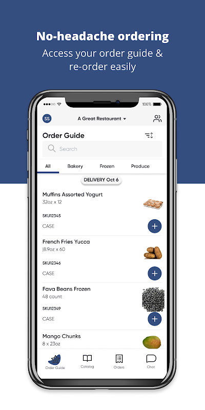 Notre application mobile vous permet de rechercher dans notre catalogue complet de produits, de gérer et de mettre à jour votre guide de commande et d'acheter ce dont vous avez besoin au moment où vous en avez besoin. Cela fait partie de notre engagement à vous offrir une expérience de commande que vous allez adorer.