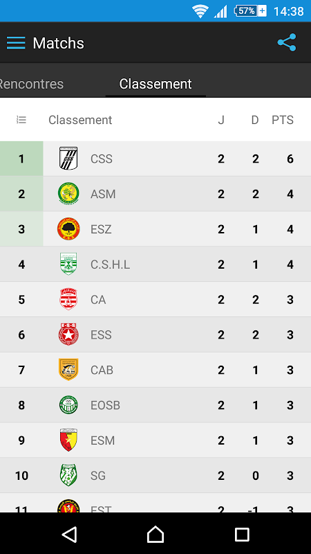 - La consultation du classement, résultats et prochain matchs du CSS