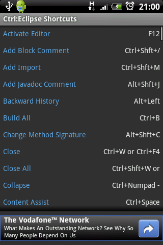 • Ctrl: Eclipse Shortcuts capture d'écran 1