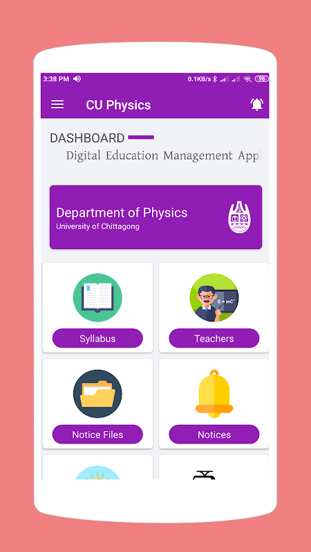 ⇨ Department Website- You will find this feature in the navigation drawer menu. With this feature users can access to the website of Department of Physics, Chittagong University (CU).