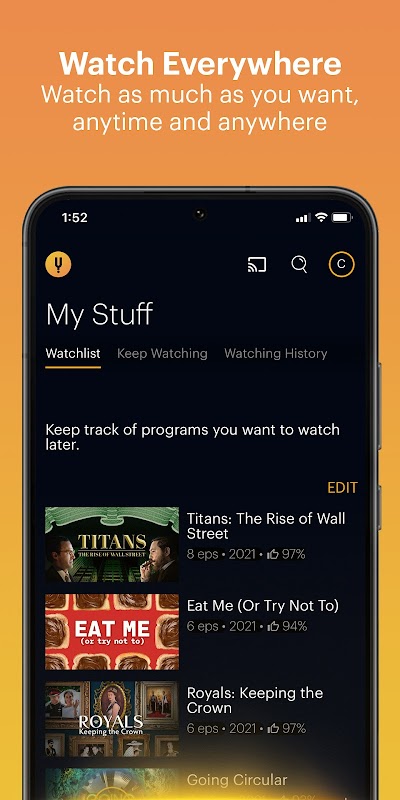 - Marquez des émissions pour les regarder plus tard ou reprenez la lecture d'émissions précédemment visionnées sur d'autres appareils
