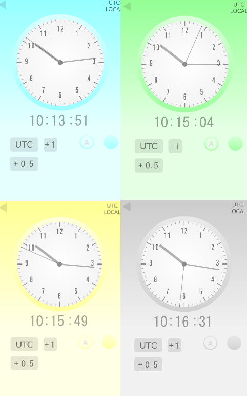 UTC and local, 15 standard times in real time.
