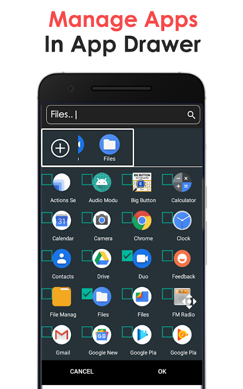 • All apps display in app drawer with option to add most frequent used apps