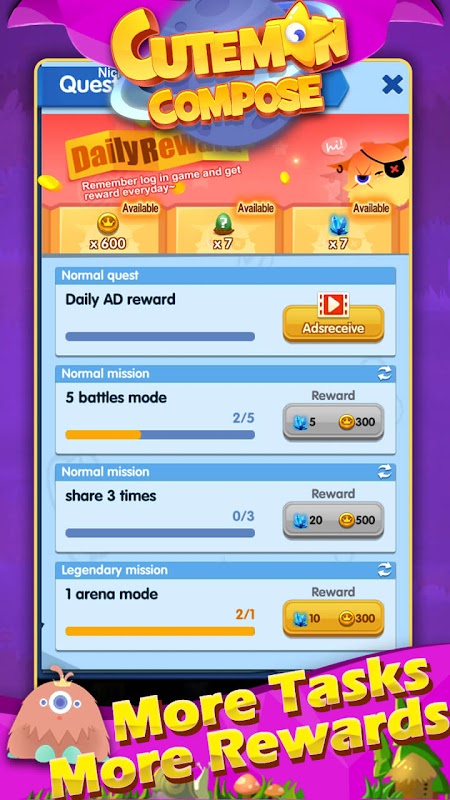 It is a unique and interesting battle game, with a very creative gameplay, and a variety of fun modes waiting for players to choose and challenge, and experience a brand new competitive experience in the game. Summon Cutemon, evolve to attack, new