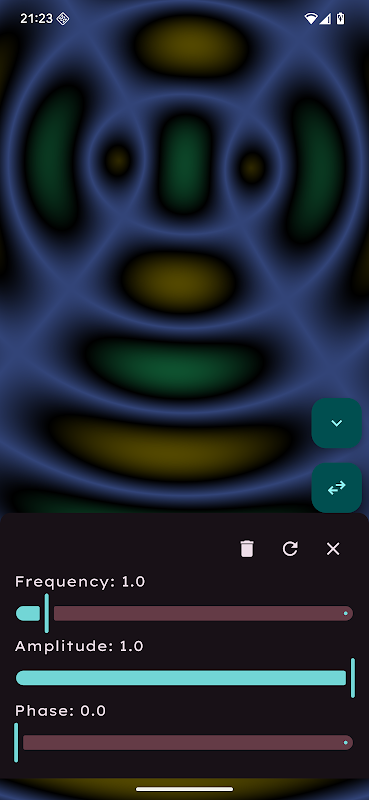 Créez de superbes représentations visuelles des interférences sonores. Expérimentez différentes configurations de nœuds pour générer des symphonies visuelles complexes d'ondes superposées.