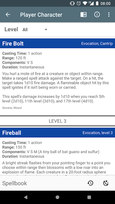 - Livre de sorts, liste des sorts, dons et caractéristiques de D&D 5e