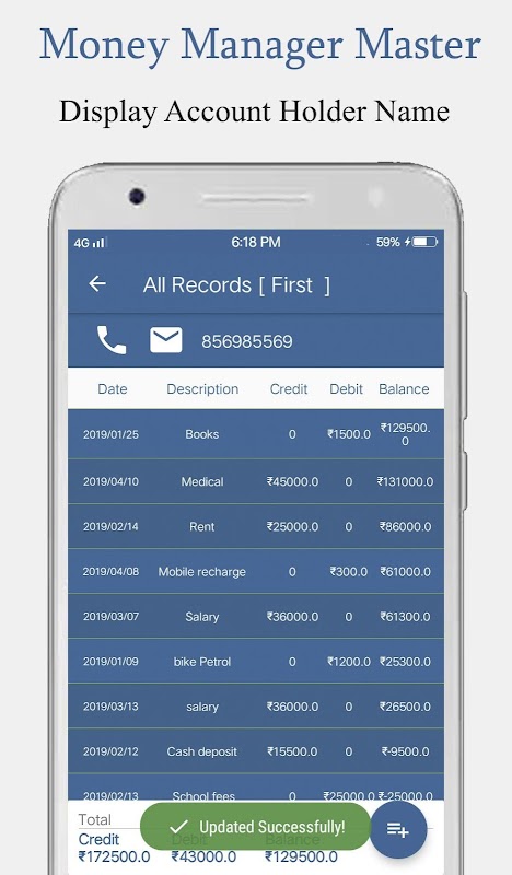 Accounts Manager app keep track of your daily money transactions by storing credit and debit history.