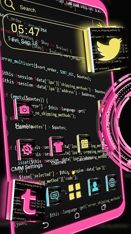Venez télécharger le thème Dark Coding maintenant et d'autres surprises vous attendent. Cela permettra à votre mobile Android de garder une longueur d'avance sur la tendance.