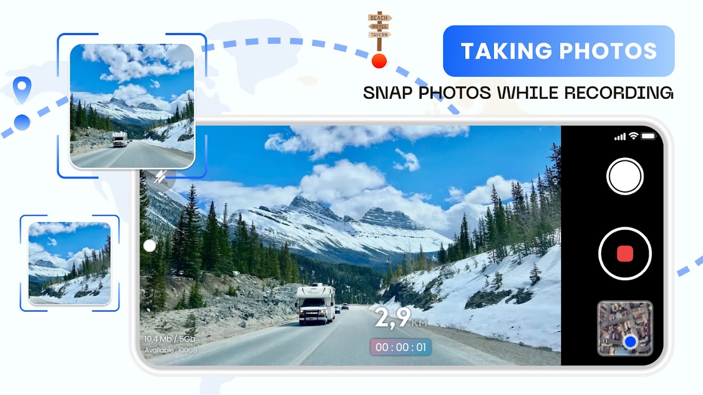 ⭐️ Partagez facilement vos trajets : Partagez vos vidéos enregistrées avec vos proches ou sur les réseaux sociaux en quelques clics.