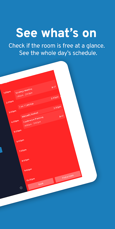 • Trouver des salles gratuites - Si la salle de réunion est réservée, trouvez et réservez facilement une salle gratuite à proximité.