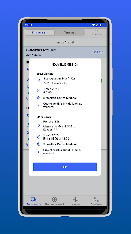 ⭐ Partagez les informations en temps réel avec tous vos interlocuteurs (statut du transport, heure de départ et d’arrivée sur site…) ;
