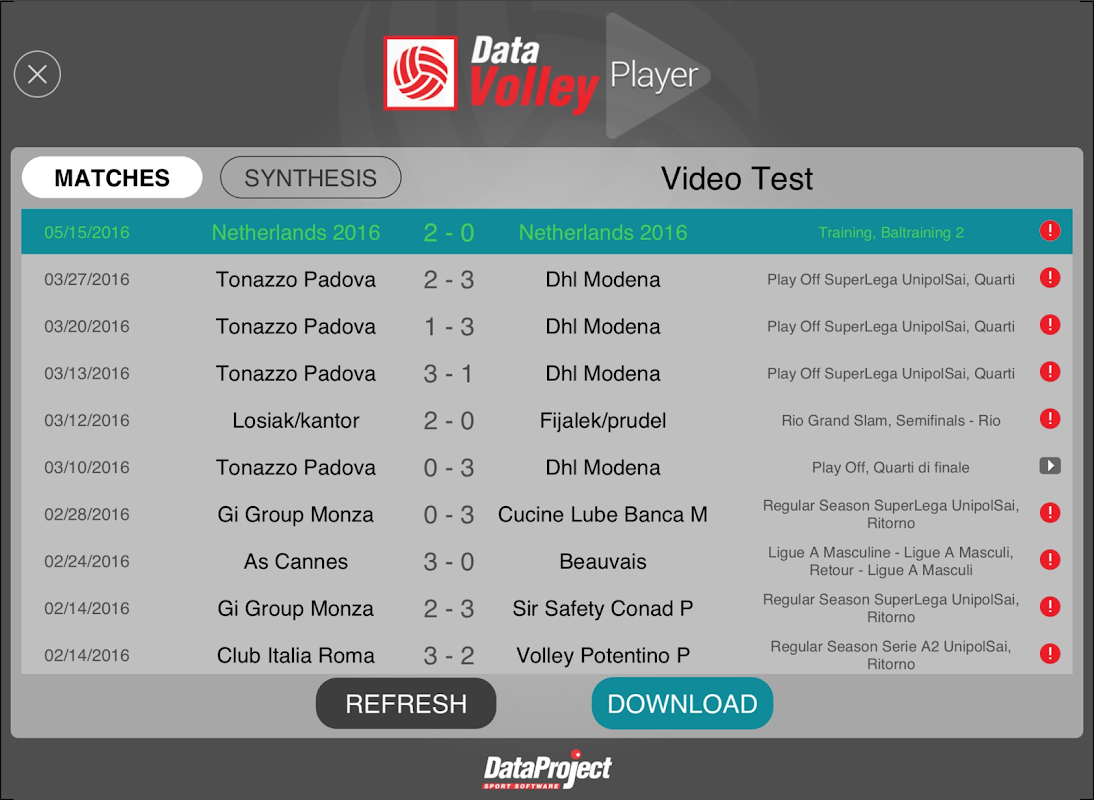volley données 4 Player permet d'importer un match de données Volley Pro 4 et analyser en quelques clics. Parfait pour les joueurs et le personnel qui veulent examiner et regarder à nouveau différente situation de jeu